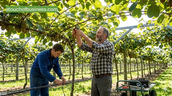 A kiwi farm is a fruit-growing business built around long-lived vines, not a quick seasonal crop. You plant the block, train the vines onto a strong trellis, manage water and frost risk, support pollination, and then harvest, cool, sort, and sell the fruit.