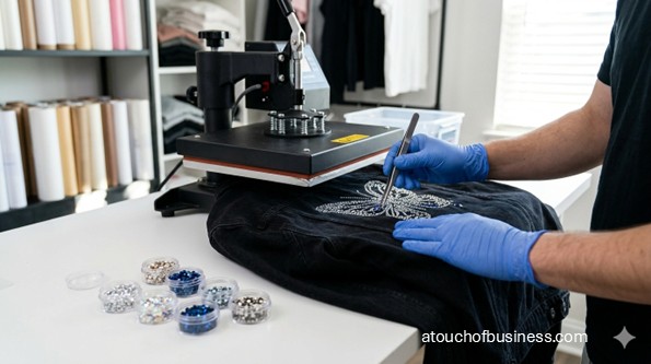 A rhinestone business usually starts as a small custom studio that designs and sells decorated goods such as shirts, hoodies, tote bags, transfers, and simple decal-style items. In a home-based setup, you are not opening a walk-in shop. You are building a clean, repeatable process for design, proofing, production, packing, and delivery.